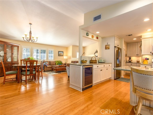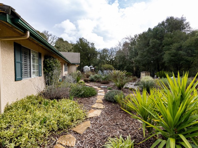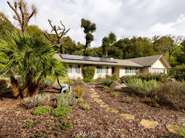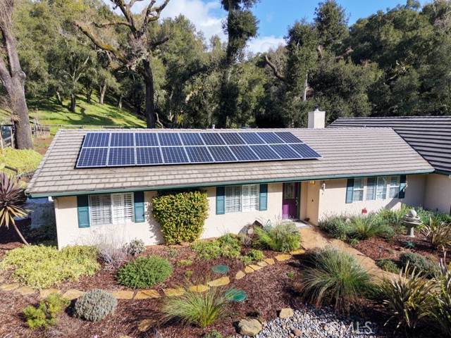 Absolutely turnkey inside and out, this thoughtfully upgraded home offers comfort, functionality, and seamless indoor-outdoor living. Bamboo flooring and luxury wide-louver shutters run throughout, creating a warm, cohesive feel. The front living and dining areas flow effortlessly into the kitchen, forming an open and welcoming main living space ideal for everyday living and entertaining. The completely remodeled kitchen is both beautiful and functional, featuring soft-close cabinets and drawers, quartz countertops, a wine refrigerator, pull-out shelving, lazy Susan corner storage, a spacious pantry, and an adjacent prep nook. Slip into the cozy living room offering the warmth of a wood-burning fireplace and built-in storage, perfect for relaxing evenings or casual gatherings. A fully enclosed sunroom expands the living space and brings the outdoors in. Dual-pane windows, ceiling fans, skylights, and excellent airflow come together to create a true indoor-outdoor living experience. The primary suite serves as a peaceful retreat with a sliding glass door opening directly to the patio, ideal for morning coffee or quiet evenings. The primary bathroom blends comfort and modern design with thoughtfully planned ease-of-use upgrades, hopper windows for natural light and privacy, and a Robern Uplift Tech medicine cabinet offering both style and function. Outdoors, enjoy privacy and visiting wildlife in this true gardener’s delight. The grounds are thoughtfully planned to provide changing color throughout the seasons and include custom raised beds for a farm-to-table lifestyle, a private raised deck, and storage. A spacious two-car garage with pull-down stairs, a 30-amp outlet, owned solar, and RV parking complete the package. Meticulously maintained and beautifully upgraded, this home is truly move-in ready; designed for effortless living, entertaining, and enjoying the outdoors year-round. Schedule your private showing today and start enjoying the Central Coast Lifestyle. Please note, home is not visible from the street, showings are by appointment only, thank you.