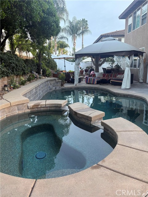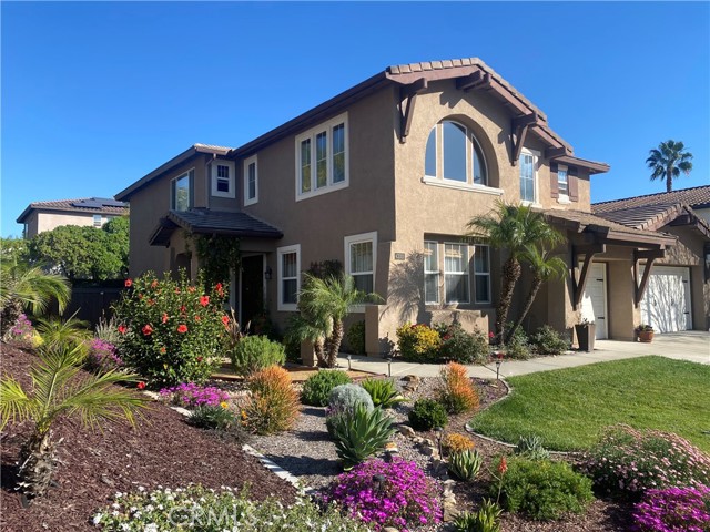 Welcome Home to this exceptional resort-inspired estate nestled within the highly desirable Paseo Del Sol community of Temecula. Gracefully situated on a generous lot, this five-bedroom residence with a bonus room blends timeless design with modern comforts, offering an ideal balance of elegance, functionality, and California indoor-outdoor living. From the moment you enter, the home impresses with soaring ceilings, designer flooring, and abundant natural light that flows effortlessly throughout the open-concept floor plan. The expansive living and family areas are thoughtfully designed for both everyday comfort and grand-scale entertaining, anchored by a warm fireplace and refined architectural details. The gourmet kitchen serves as the heart of the home, featuring granite countertops, custom cabinetry, quality appliances, and a breakfast nook, seamlessly opening to the family room and backyard oasis. A main-level bedroom and bath provide flexibility for guests or multigenerational living, while upstairs reveals a spacious primary suite, secondary bedrooms, and a versatile bonus room ideal for a media lounge, home office, or game room. Step outside to your private resort-style backyard, where a sparkling gunite pool and spa, expansive patio areas, and a built-in BBQ island create the ultimate setting for entertaining or relaxing under the Temecula sun. Thoughtfully designed for year-round enjoyment, this outdoor retreat feels like a private escape.