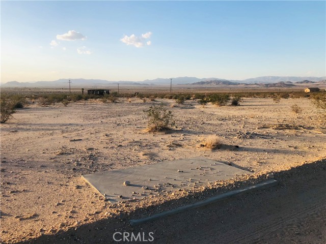 Colorful skies and solitude from this 5 acre lot in Wonder Valley. Approximate 192 sq ft cement slab with fallen cabin remnants. Escape the crowds and camp for the weekend. Incredible stargazing that you must see to believe. Power lines adjacent to the property. Easy access on a county maintained dirt road. Short drive to the Joshua Tree National Park entrance in 29 Palms. Property does not have an assigned address - for listing purposes only. GPS: (34.1475761, -115.9719358) APN 0625-041-18-0000. Owner May Carry.