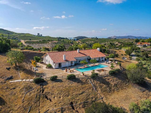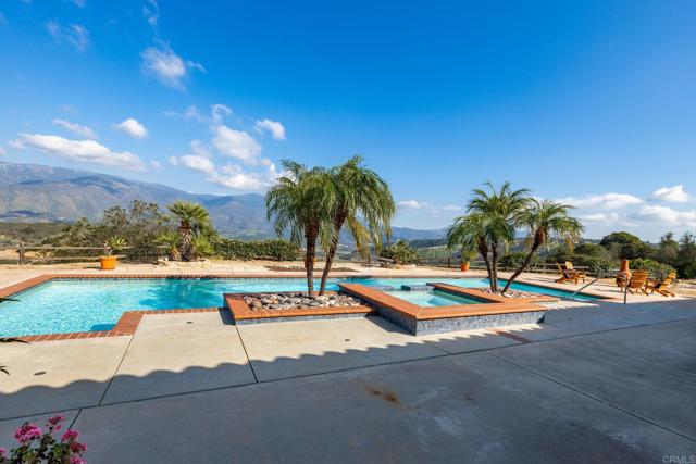 Nestled in the heart of Valley Center, this stunning single-story estate offers 3320 sq ft of beautifully designed living space with 4 bedrooms and 3.5 baths. Vaulted ceilings and walls of windows flood the open-concept layout with natural light, showcasing panoramic views of Valley Center and Palomar Mountain. A chef's kitchen with double ovens and dual Sub-Zero refrigerators flows seamlessly to the living spaces, while the resort-style pool creates the perfect setting for relaxing or entertaining. Set on a sprawling lot with endless potential for horses, an RV garage, workshop, or guest house, this private retreat is the ideal escape to your dream Valley Center lifestyle