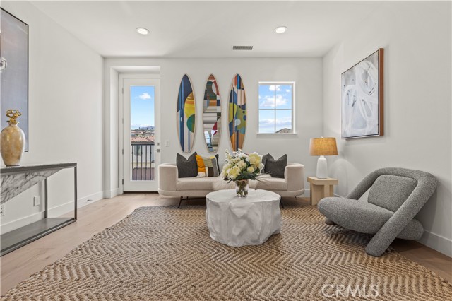 Upstairs, a generous loft provides additional versatile space, while the primary suite serves as a private sanctuary. Featuring dual walk-in closets, a spa-inspired marble bath, and a private view balcony, this retreat captures unforgettable sunrise and sunset moments above the city.