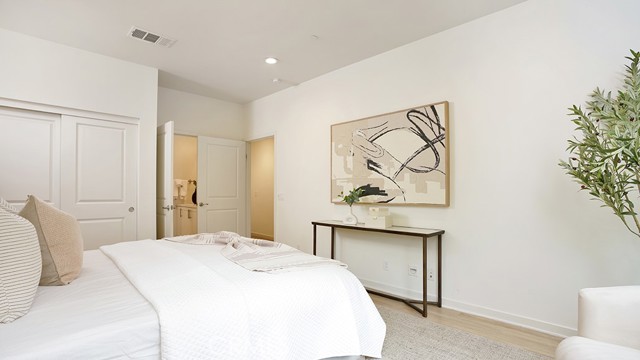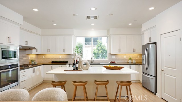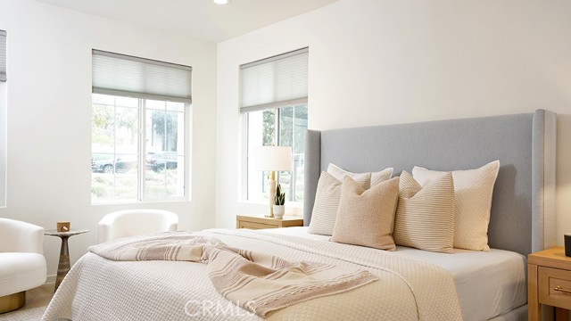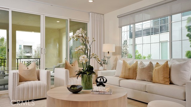 Situated on a premium corner lot within the highly sought-after Great Park community of Irvine, this beautifully appointed residence offers the perfect blend of modern design, functionality, and lifestyle convenience. Thoughtfully designed, the home features four bedrooms and three-and-a-half baths, including a desirable main-level bedroom with its own ensuite bath, ideal for guests, a private office, or added flexibility. The second level showcases a bright, open-concept layout where the kitchen, dining area, and living room seamlessly connect to create an inviting central gathering space. Expansive windows flood the interiors with natural light, while the living room extends effortlessly onto a generous private balcony, perfect for indoor-outdoor entertaining or quiet relaxation. Upstairs on the third level, three spacious bedrooms include a well-appointed primary suite featuring a luxurious ensuite bath with dual sinks and a separate shower. An adjacent laundry room adds everyday convenience. Recessed LED lighting enhances the home throughout. Residents enjoy walking-distance access to an array of resort-style community amenities, including a pool, spa, BBQ areas, clubhouse, and the beautifully designed Parasol Park. The surrounding area is rich with recreation, offering nearby water parks, tennis courts, soccer fields, Great Park Ice & FivePoint Arena, and more. Located within the coveted Irvine School District, this exceptional home presents a rare opportunity to experience comfort, style, and community in one of Orange County’s most desirable settings.