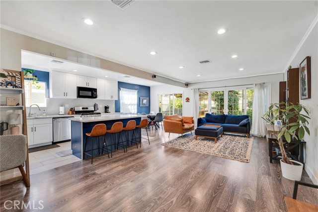 3 BEDROOM 3 BATH PLUS A GUEST HOUSE!! Welcome to a newly remodeled, energy efficient (INCLUDES SOLAR) three bedroom, two bath home that offers a blend of elegance and functionality. This property also features a charming attached studio GUEST HOUSE perfect for hosting family and friends, or a private office. Revel in the fresh ambiance of modern finishes, enhanced by laminate floors, tons of natural light and recessed lighting throughout. The heart of the home is a chef's dream, showcasing an open kitchen adorned with stainless appliances, quartz counters, a convenient breakfast bar, and custom cabinetry. The open and inviting living room is a perfect haven to relax or entertain. The seamless flow extends effortlessly to the backyard, creating a harmonious connection between indoor and outdoor spaces. The primary suite is a serene retreat, complete with a walk-in closet and a modernized private bathroom featuring a step-in shower. Two additional nice sized bedrooms and an updated bathroom complete the beautiful living space. Step outside to unwind in the expansive rear yard, featuring drought tolerant native plants, fragrant fruit trees, and a large built in raised garden bed. The fully covered gazebo is perfect for gatherings and relaxation. Tucked away on a tranquil street, this family friendly neighborhood is an excellent place to call home. Adding to its allure, the beautifully designed guest house boasts a separate address and entrance, presenting a rare opportunity within this sought-after community. Don't miss the chance to make this remarkable property your own!