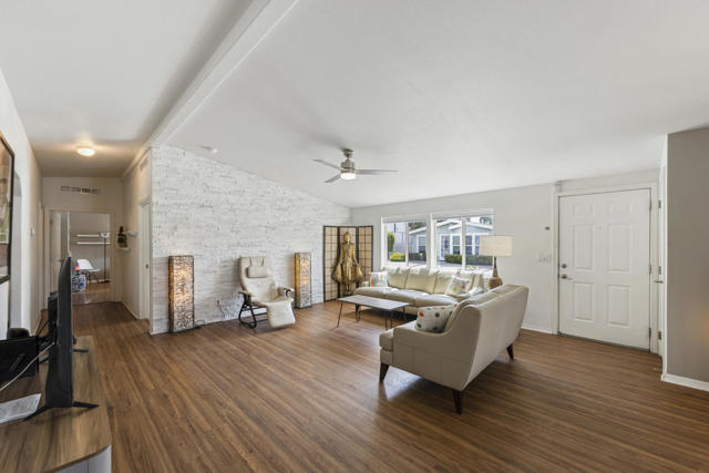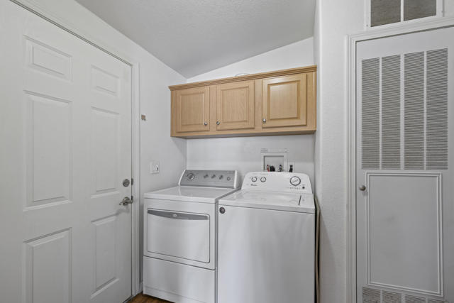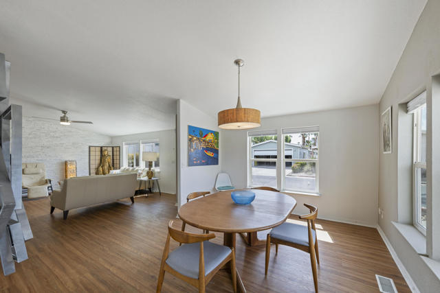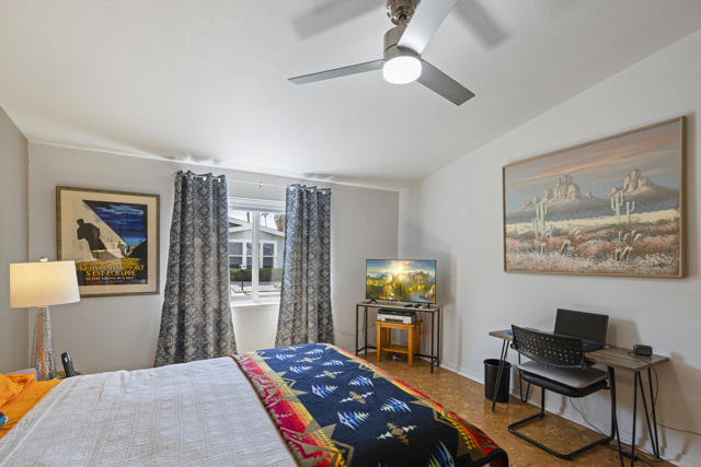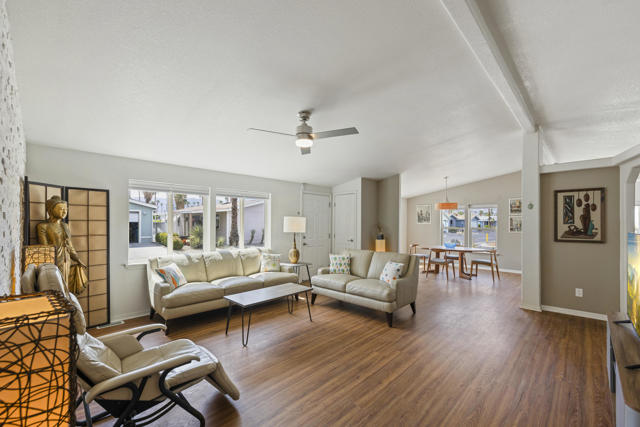 As you enter the Great room, you'll love the white quartzite stack stone accent wall in the living room. This move-in ready home has easy to maintain laminate flooring with cork flooring in the bedrooms and office. Uplifting cathedral ceilings make the open floor plan feel even more spacious. 2 bedrooms plus an office that could be easily transformed into a 3rd bedroom. Double pane windows with custom light/dark shades are sure to save you money on your electric bills. Spacious and private side yard for indoor/outdoor living. Spectacular panoramic mountain views. The Canyon is a premier park with 2 community pools, spas, billiard room, library, gym, shuffleboard building and dining hall. You will love living in this home and in this welcoming community.