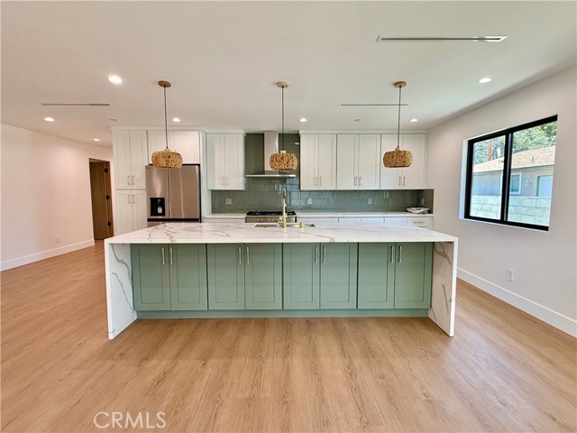 A rare opportunity to own a brand-new, fully built income property generating nearly $10,000 per month in rental income, featuring a beautifully designed main residence plus 2 ADUs—for a total of 5 bedrooms and 5 bathrooms across 3 separate units. Each unit has its own address, private entrance, and dedicated outdoor space, offering privacy and flexibility for tenants or owner-occupants. The primary home at 22130 Gault Street offers 3 bedrooms and 3 bathrooms with soaring 10-foot ceilings, gold-accented finishes, an expansive open layout, and a chef-inspired kitchen with a large island and premium stainless steel appliances. The spacious primary suite includes a walk-in closet and dual-sink bath, complemented by in-unit laundry, central HVAC, private backyard, and dedicated parking. The two additional ADUs 22132 Gault Street and 22130 1/2 Gault Street mirror the same modern aesthetic, each featuring sleek kitchens with stainless steel appliances, in-unit laundry, central heating and air, designated parking, and stylish, move-in-ready interiors—one with direct access to its own yard space. With high-quality construction, custom finishes throughout, and strong, established income, this turnkey property presents an exceptional opportunity for investors or owner-users seeking privacy, modern design, and impressive cash flow.