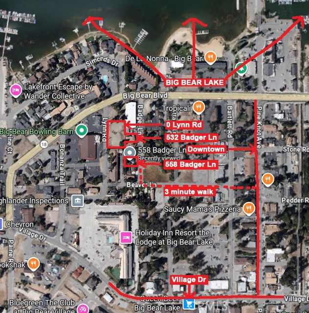 Welcome to 532 Badger Ln. A prime commercial opportunity in the heart of Big Bear Lake’s Village. This 1,866 sq.ft. updated retail building, formerly a lighting and home goods store, offers excellent visibility and flexibility within the highly sought-after Village Specific Plan area. The property supports a wide range of potential uses and is zoned Commercial Lodging, creating a unique opportunity to convert the existing structure into a boutique B&B or other lodging concept. Located just steps from Big Bear Lake, the Village’s restaurants, shops, and year-round attractions, this is a true walkable destination that benefits from strong pedestrian traffic and consistent tourism. The property may also be purchased in conjunction with an adjacent lot (0 Lynn Rd - offered at $749,900) that includes preliminary plans for a 24-unit hotel, providing a compelling assemblage opportunity for developers or investors seeking scale in a premier location. Ideal for owner-users, investors, or developers looking to capitalize on one of Big Bear’s most vibrant commercial corridors. Buyer to conduct all due diligence with the Planning Commission regarding permitted uses, zoning, and development potential. Seller is willing to give concessions to buyer at closing.