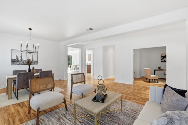 This corner lot single-story Olive Hills Estates home is located on a calm street in a peaceful neighborhood. Inside the front door, you will find high ceilings and abundant natural light which creates a bright and airy atmosphere throughout the home. First, you are welcomed by a formal living and dining room, then on your right there is a home office. Walking down the hallway, you enter a spacious family room and an open gourmet kitchen with an eat-in breakfast nook. The house also features a master suite, two bedrooms, two full bathrooms, a laundry area, and a three-car garage. The oversized backyard provides all the extra room to build your dream pool and entertainment area. The Olive Hills Estates neighborhood is one of those pockets that feels comfortable and convenient. You can experience a full range of lifestyles in San Marcos, where you and your family are able to benefit from nearby parks, trails, and open spaces, as well as quick access to Cal State San Marcos, Palomar College, Kaiser Hospital and dining/shopping opportunities along the 78 corridor. This home is perfect for a Buyer that wants a smart purchase now by starting with a “solid base” and making improvements later while slowly generating equity for the future. Come check out this incredible property and make it into your dream home.