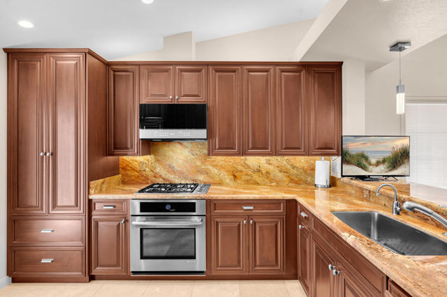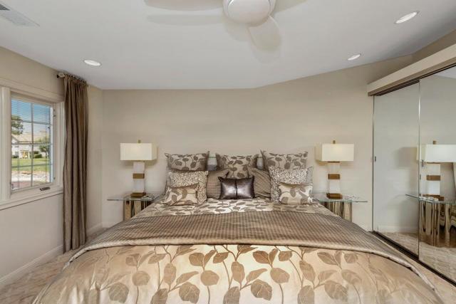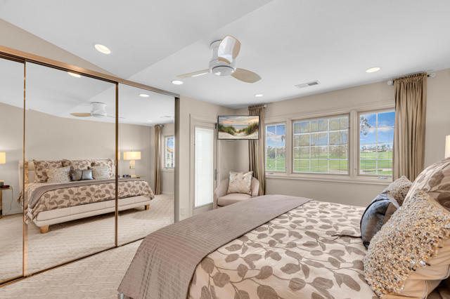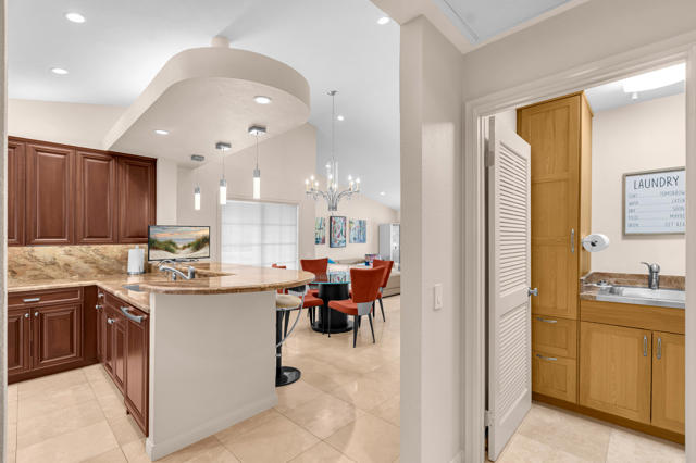 Love at first sight! VIEWS beyond! Southwest Mountains, fairway, green, rolling hills, water VIEWS! Upscale, timeless Total Remodel -- Located in Desert Falls CC! Come to Open house this Sunday 12-3pmStunning Best describes this pied-a-terre -more like a penthouse! An upper level, naturally bright two bedroom -with a primary suite- two full -spa like bathrooms, and a two-car garage that's just as Pristine, with expoxy floor & built- in storage. Located on an interior street with Views from every window!Offered turnkey furnished! A timeless neutral tone remodel like no other! Travertine Floors! High end carpeting in both bedrooms only. Stunning fire & ice electric fireplace. Beverage cooler in bar area. Chef's kiss of a kitchen with gas stove, large counter with bar stool seating! The best finishes throughout! Fantastic Light fixtures and chandeliers-ask about 'touch mirror tv' in primary bathroom! New doors, slider and windows! Call now for your private tour!