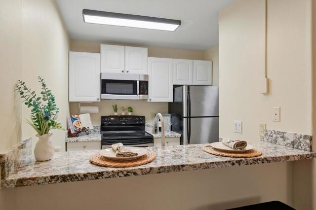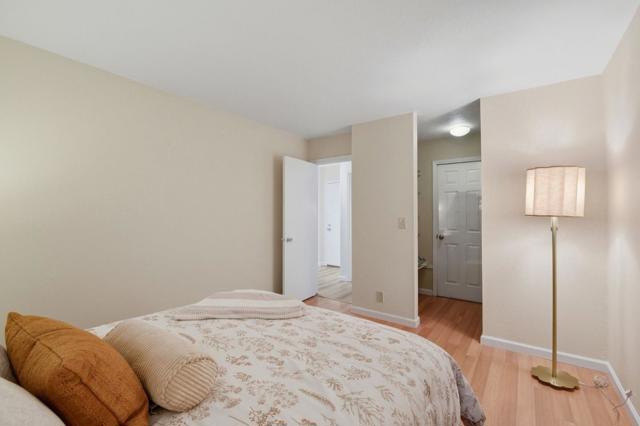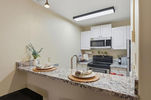 Upgrades and staged, well maintained and clean condition. Ideal commuter home working in Silicon Valley + perfect for first-time buyers! -Updated kitchen & bath -New leveled laminate flooring, popcorn ceiling removed -Fresh neutral paint throughout -Private patio providing indoor/outdoor living and with back gate access -No steps within the unit Ground-level 1-bedroom; jack-n-jill style closet. -Carport with storage. The complex offers a community environment with redwood trees and water features. It is conveniently located in Santa Clara, directly across from Santa Clara Central Park and near shopping, dining, centrally located to major commuter routes, and Kaiser Permanente Santa Clara Medical Center.