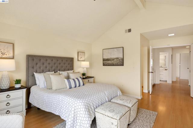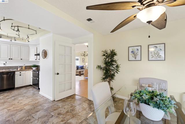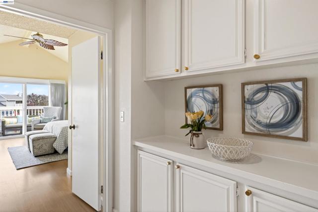 Transparent price! Discover a one-of-a-kind, move-in ready gem. This exceptional home, featuring three bedrooms and two fully remodeled bathrooms, is uniquely positioned to offer spacious privacy from neighboring units. The amenities of this gated community include a pool and spa, enhanced by walking paths winding among the lagoons leading to the bay shore and park. Access to the home entrance is bordered by beautiful pots, and once inside, the airy and bright interior is framed by new windows that invite the outside in. The primary suite is a tranquil retreat with sweeping and serene lagoon views and the East Bay hills. The double patio doors open onto a generous balcony, perfect for relaxation and breakfasts al fresco. The second bedroom offers a cozy escape with its own fireplace, tall ceiling and corner windows. The third bedroom, customized with wrap-around closet cabinetry, serves as a flexible office space or guest room. Both bathrooms were remodeled with custom cabinetry and storage The kitchen and dining area feature custom cabinetry and premium appliances. This is a rare opportunity to own a remarkable home . Don't miss this one!