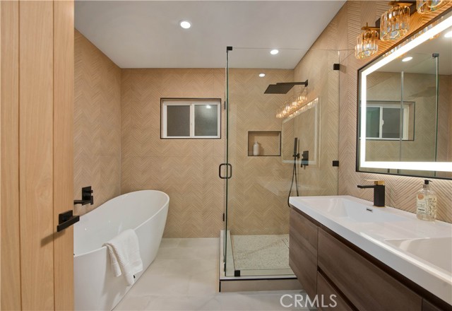 Discover a rare investment and lifestyle opportunity at 17905 & 17907 Bullock St in the highly sought after neighborhood of Encino Park. This thoughtfully upgraded dual-residence property offers exceptional flexibility—perfect for extended families, generating rental income, or living in one home while leasing the other. The main home has been completely remodeled and spans 1,753 square feet with 4 bedrooms and 3 bathrooms. Bright, open, and contemporary, the living room features soaring ceilings, luxury vinyl plank flooring, and a seamless open-concept design ideal for everyday living and entertaining. The chef’s kitchen is a standout, appointed with premium Thor stainless steel appliances, sleek quartz countertops with a waterfall-edge peninsula, a full-height quartz backsplash, walk-in pantry, and convenient pot filler. The living area centers around a striking quartz-framed electric fireplace, creating a warm yet modern focal point. The spacious primary suite serves as a private retreat, complete with a walk-in closet and spa-inspired bath showcasing a soaking tub and designer-tiled shower. Additional highlights include a junior suite, dedicated laundry room, tankless water heater, white stone accents, and a 1-car garage equipped with an EV charger. Built in 2025, the newly constructed ADU at 17907 Bullock St offers 752 square feet with 2 bedrooms and 2 bathrooms. Designed for privacy and efficiency, it features a separate entrance from Oxnard Street, carport parking, laundry hookups, fully electric systems, owned solar panels, and its own tankless water heater—making it an ideal turnkey rental or guest residence. Both homes benefit from extensive upgrades, including new PEX plumbing, a new sewer line, new roofing, central HVAC, fire sprinkler systems, double-pane windows, and LED recessed lighting throughout. Designer finishes elevate the exterior and interior alike, from floating vanities and heated anti-fog LED mirrors to smooth Santa Barbara stucco, modern fencing, and raised garden beds for your home grown vegetables. Conveniently located near Ventura Boulevard’s shops and dining, local parks, farmer's market, this move-in-ready Encino property offers versatility, modern comfort, and long-term value.
