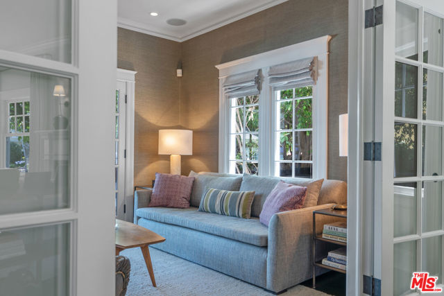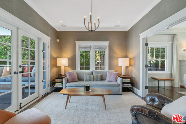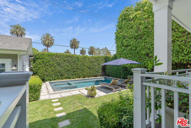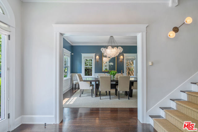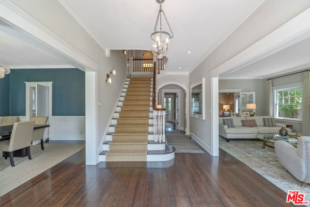 Beautiful East Coast Traditional on Coveted Irving Blvd in Prime Windsor Square. Welcome to this light-filled home that's been lovingly remodeled while keeping all its original charm. A graceful center hall with a sweeping staircase sets the tone as you step inside. To the right, a bright living room with a fireplace opens through French doors to a cozy den overlooking the yard, the perfect spot to relax, watch TV or read a book. A breakfast room connects to the fantastic cook's kitchen featuring high-end appliances, a large center island, tons of storage, and endless counter space. There's even a casual dining area and hangout space with views of the gardens. The back of the house opens to a large entertaining deck that's ideal for summer BBQs and family dinners. You'll also find a formal dining room, a small butler's pantry, and a stylish powder room on this level. Upstairs, the spacious primary suite sits quietly at the back of the house and includes a large walk-in closet, a spa-like bath with a steam shower, and a private roof deck with city and neighborhood views. Three additional bedrooms, two beautifully remodeled bathrooms, and a laundry room complete the second floor. The third floor offers a great bonus space perfect for a gym, playroom, or home office. Out back, the private, hedged yard feels like your own little retreat with a newer pool and spa, outdoor shower, and a great guest house for family and friends. All this just moments from Larchmont Village and everything Windsor Square has to offer. Square footage includes the main house, 3rd floor gym/office and guest house.