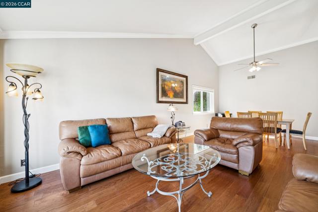 Open Sat Feb 28 - 1pm to 4pm.This beautifully refreshed home offers inviting living space. Step inside and you’re greeted by a dramatic living room with soaring vaulted ceilings that create a sense of openness. The spacious layout flows naturally, making it easy to relax or entertain. At the heart of the home is a beautifully updated kitchen featuring recessed lighting, stainless steel appliances, and renovated cabinetry. Enjoy mornings in the breakfast nook with its large bay window or host dinners in the adjacent dining area with plenty of room for family and friends. The family room, centered around a classic brick fireplace, offers a warm and welcoming place to gather. Step out to the covered backyard patio, extending your living space outdoors. Upstairs, the primary suite feels like a true retreat. Vaulted ceilings add to the sense of space, and a private balcony deck offers a peaceful spot to unwind. Two additional bedrooms provide flexibility for family, guests, or a home office. The remodeled bathrooms add style. Engineered flooring and crown molding enhance the home throughout. A newer roof adds valuable peace of mind. The backyard is a true highlight with a natural backdrop that’s perfect for relaxing or entertaining. Convenient to shopping, commute routes and more.