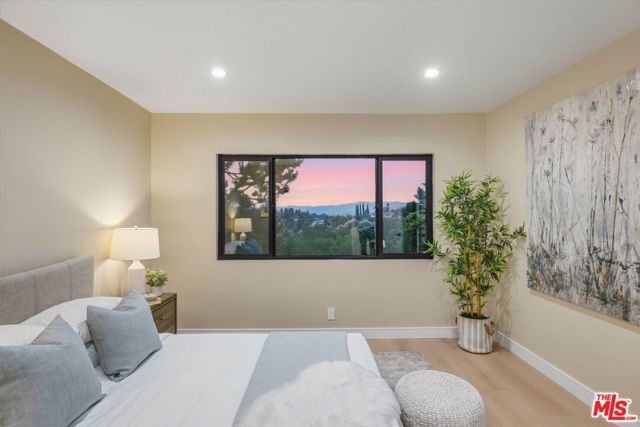 Perched high above the Valley in the prestigious Royal Woods of Sherman Oaks, 3465 Valley Meadow Road offers sweeping panoramic city and mountain views that captivate by day and shimmer with sparkling lights by night. Completely reimagined from the ground up, this exceptional two-story residence has undergone a meticulous, full-scale renovation blending architectural integrity, structural precision, and elevated modern design. Behind its stately presence and wide frontage lies a thoughtfully engineered home featuring seamless open-concept living experience, a newly constructed staircase, brand-new roof, and new plumbing and electrical systems. Integrated high-voltage capacity for fast EV charging. The main residence offers 3 bedrooms and 3 bathrooms, each space filled with natural light and framed by brand-new floor-to-ceiling glass panels that capture breathtaking valley views. The heart of the home is a stunning open-concept kitchen and living area designed for effortless entertaining and everyday comfort. The chef's kitchen features high-performance appliances, delivering both functionality and cohesive modern design. Spa-inspired bathrooms and custom vanities, curated by Los Angeles design experts, combine clean architectural lines with warm, earthy textures creating refined yet inviting spaces. Adding incredible flexibility and value, the property also includes an attached JADU -3463 Valley Meadow- complete with its own full kitchen, bathroom and living area with wide windows, plenty of natural light and view. With separate access, it can function independently from the main house ideal for guests, extended family, rental income, or a private office suite. Step outside and experience true California living: expansive outdoor entertaining areas, flat yard space, and panoramic views that stretch across the Valley and surrounding mountains. Surrounded by luxury estates, with convenient Westside access, top-tier schools, and premier shopping and dining nearby, this home offers both privacy and accessibility. Turnkey, thoughtfully designed, and elevated above it all this is a rare opportunity to own a fully transformed residence in one of Sherman Oaks' most sought-after neighborhoods. Come experience 3465 Valley Meadow Road for yourself.