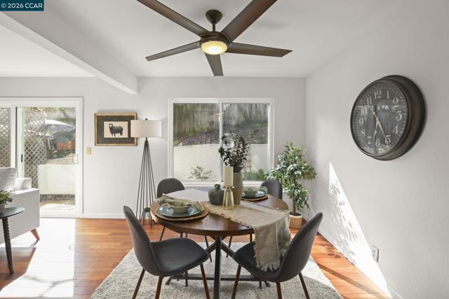 Ignacio Gardens Move-In Ready, 3 Bedroom, 2.5 Bathroom Townhome with 2 Car, attached garage. Private End Unit. Beautiful Hardwood Floors throughout. All New Interior paint. New Lighting and Bathroom Mirrors over painted vanities. Updated Granite kitchen with white cabinetry, Breakfast bar and built-in microwave. Functional floorplan features a large living room with fireplace and slider to back patio. Eat-in kitchen with breakfast bar, great for entertaining. Generously sized primary ensuite with lots of closets. Inside laundry closet. Private Back patio with room for a garden or just a place to sit and enjoy a good book. Easy access to freeway. Community Pool.