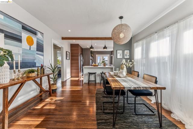 Maxwell Park Bungalow w/attached lower level Junior ADU w/separate entrance (399 sq ft per archit drawings) Stylishly remodeled 1923 home w/architectural detail & modern updates. Light-filled living room w/refin. hdwd floors, multi-pane windows, fireplace & charming built-in cabinets. Enjoy the open, floorplan that leads from the dining room to the tastefully remod. kitchen, where French doors open to fabulous large deck—perfect for entertaining, enjoying your morning coffee & effortless indoor-outdoor living. The main level has 3 BRs & an updated bath. Primary bedroom is a true retreat w/French doors that open directly to the deck. The lower level, w/its own private entrance, presents a beautifully flexible junior ADU (JADU) offering 1 BR, 1 BA w/a kitchen, living & dining area. Opening to an big backyard, this space is ideal for guests, an in-law, home office or income potential. Other features are SOLAR PANELS, on-demand tankless water heater, big bsmt for storage & long driveway for off-street parking. Minutes away to grocery shopping, Farmer Joes, La Farine Bakery, restaurants & good coffee. Close to beautiful Northeastern/Mills College and AC Transit, 580 & 13 Freeways. Maxwell Park has a strong sense of community- a neighborhood that residents are happy to call home.