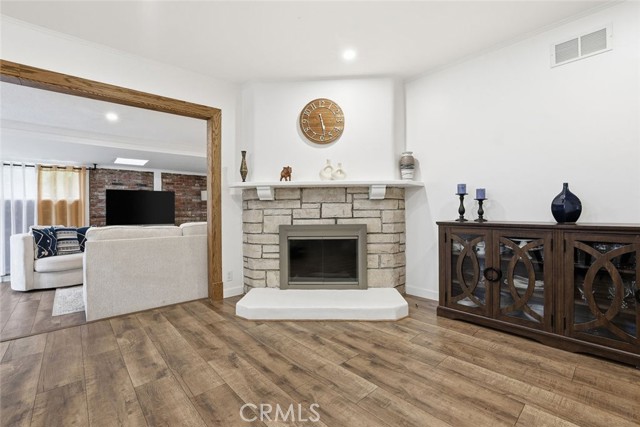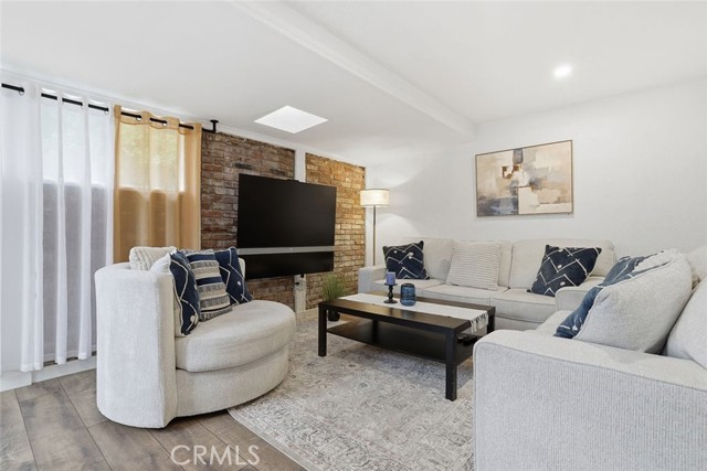 The generous living room centers around a cozy fireplace and flows seamlessly into a welcoming den, highlighted by a skylight and direct access to the backyard patio. The outdoor space has been extensively upgraded with beautiful stonework, enhanced lighting, refreshed landscaping, new lawn installation, and a restored automatic sprinkler system, creating a private retreat ideal for entertaining or relaxing.