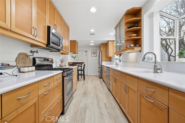 Designed with a functional floor plan and filled with natural light, the home sits on an expansive 7,185 sq ft lot, perfectly suited for the indoor-outdoor California lifestyle. The spacious kitchen features Corian countertops, dual sinks, stainless-steel appliances, and an adjacent dining area ideal for everyday meals or hosting gatherings.