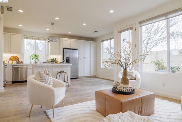 Stunning, fully remodeled corner-lot home in the heart of Pleasanton! This unique end-of-drive location offers exceptional privacy with no rear neighbors and a bright, open, airy floor plan. Soaring two-story ceilings and expansive windows are beautifully enhanced by custom interior paint and rich wood flooring throughout. The fully upgraded kitchen shines with new cabinetry, sleek countertops, stainless steel appliances, built-in storage, a center island, and a cozy breakfast nook—perfect for everyday living and entertaining. Built-in cabinetry continues throughout the home, complemented by upgraded bathrooms, a Nest thermostat, and a newer water heater (2016). Located in the highly desirable Stoneridge Square community, this home is close to top-rated schools, including Mohr Elementary School. Enjoy walking distance to Livermore outlets and shopping center with high end restrurants, minutes to Stoneridge Shopping Center, downtown Pleasanton, and convenient access to Bay Area Rapid Transit. HOA amenities include a pool and spa, Easy freeway access to 680/580/84 and BART. A must-see home in a prime location!