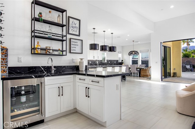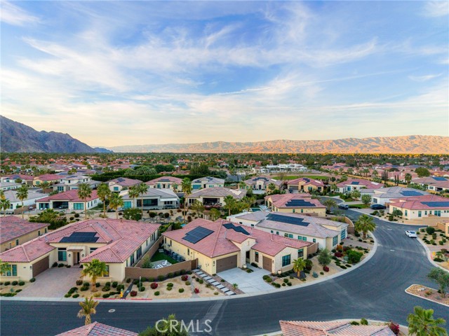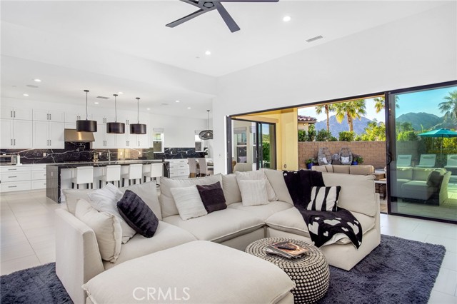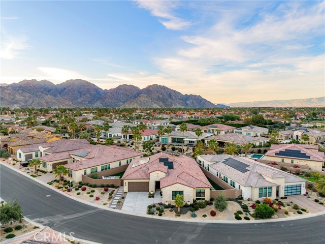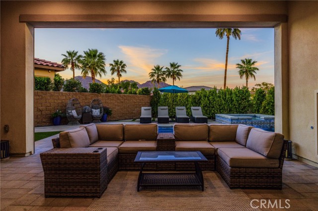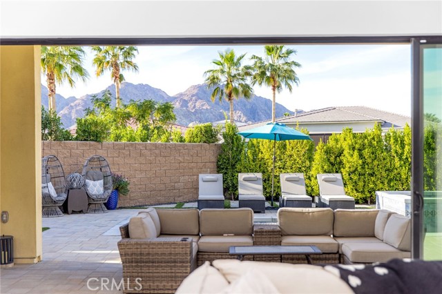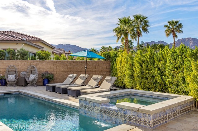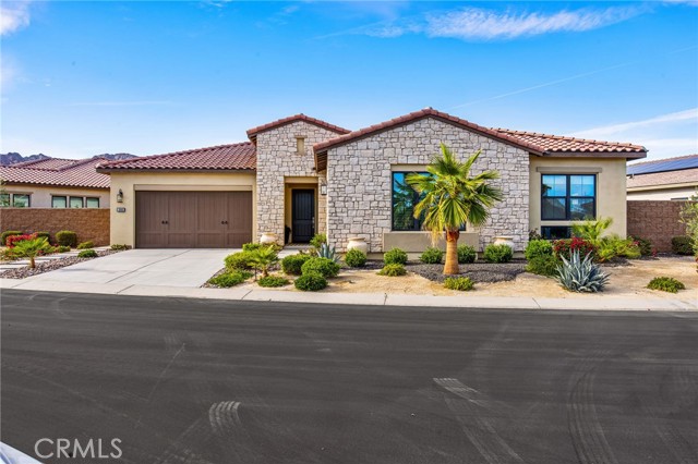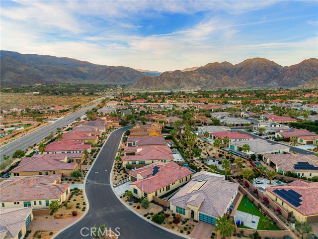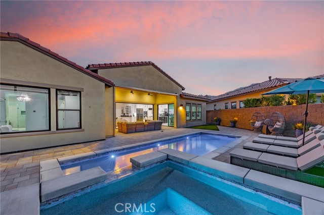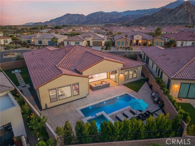 Coming soon..Tucked within the desirable community of Stone Creek Ranch in South La Quinta, this newly built Toll Brothers Larrea model blends contemporary design, quality craftsmanship, and seamless indoor outdoor living just minutes from PGA West. Designed with both comfort and entertaining in mind, the open concept layout is enhanced by soaring ceilings and expansive stacking glass doors that extend the living space to a professionally landscaped backyard. The outdoor setting features pavers, artificial turf, mountain views, a built in fireplace, fire pit, multiple gathering areas, and generous side yards ideal for recreation or additional use. The kitchen is a true focal point, offering waterfall edge countertops, premium JennAir smart appliances, custom cabinetry, a large walk in pantry, and dedicated coffee and wine bars with a built in refrigerator. High end finishes and custom window treatments continue throughout the home, creating a cohesive and refined aesthetic. The thoughtfully designed floor plan provides privacy by separating the primary suite from the guest bedroom and office. The spacious primary retreat features oversized closets, dual vanities, and spa inspired details. A dedicated office offers flexibility for remote work, a gym, or creative space. Abundant storage is incorporated throughout with well planned cabinetry and built ins.