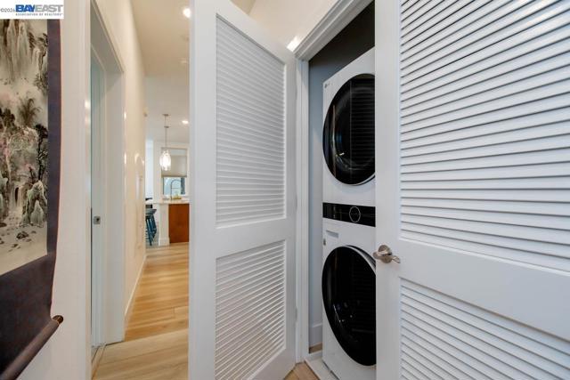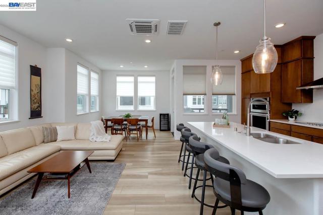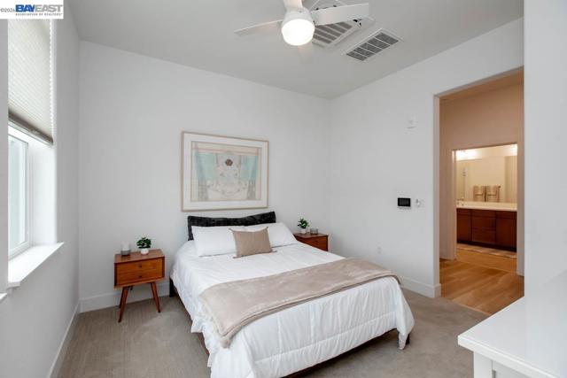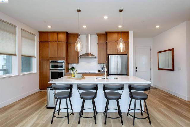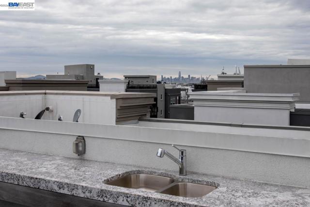 Discover modern coastal living at its finest in this stylish single-level corner penthouse condo in the coveted Bay 37 waterfront community, built in 2022. This beautifully designed two-bedroom, two-bath condo showcases an ADA friendly open-concept layout, walls of windows that fill the home with natural light, and spacious bedrooms that provide both comfort and privacy. Set within a contemporary building, the home offers desirable amenities including a private garage, dedicated bike storage, and panoramic rooftop views. The sleek kitchen features high-end appliances, a generous center island perfect for casual meals or entertaining, and an effortless flow into the bright, airy living spaces. Bay 37 delivers an exceptional lifestyle with a waterfront park, scenic estuary walking paths, picnic areas, a playground, and a community dock. Ideally located just steps from Bohol Circle, Target, Safeway, and popular local dining spots, daily conveniences are right outside your door. Commuting is simple with a complimentary shuttle to 12th Street BART, a free water taxi to Jack London Square, and nearby ferry service offering direct access to San Francisco.