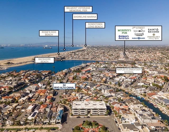 Rare canal-front mid-century coastal opportunity in the highly desirable Naples Island. The property consists of two units and can be acquired as an owner-occupied residence while generating rental income from the second unit. A standout feature is the private 24-foot boat dock providing direct canal access, along with an integrated rooftop terrace with spa overlooking the canal, a rare amenity in the submarket. The asset offers both lifestyle and income potential and is well suited for an owner-user or investor seeking a unique waterfront opportunity with upside. The property is currently vacant, allowing for immediate occupancy or lease-up. 34 Rivo Alto features a single-family-home style layout with an integrated ground-level garage and direct interior access. The lower level includes one bedroom, one bathroom, and a bonus room suitable for an office or potential bedroom conversion. The upstairs primary bedroom overlooks the canal and has direct access to the rooftop terrace and spa, offering expansive outdoor living and water views. Unit B is a two-bedroom, one-bath unit with a private sun deck facing the alley, offering separation and privacy and making it well suited for rental income, guest use, or extended family occupancy. Architectural and design characteristics include large view-oriented window openings facing the canal, stacked living levels that separate public and private spaces, and deck and terrace areas integrated into the structure for waterfront enjoyment. A new owner has the opportunity to enhance and personalize this rare asset with upgrades and finishes to match their vision, creating either a dream waterfront home with income or a strong long-term investment.