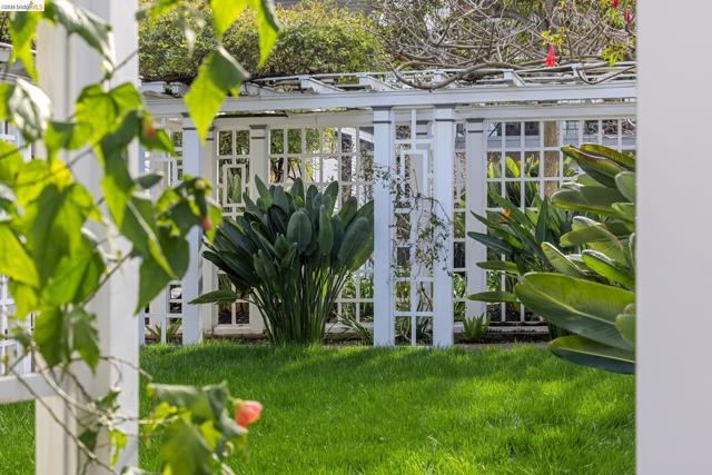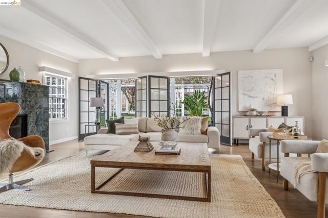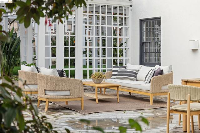 This exceptional Piedmont compound on nearly a third of an acre offers rare scale, privacy, and timeless elegance. Lush landscaped grounds, mature fruit trees, and a breathtaking 100-year-old vine-covered pergola frame a level lawn—an extraordinary backdrop for refined entertaining and relaxed California living. The updated three bedroom main residence blends architectural character with thoughtful modern upgrades. Each bedroom features an ensuite bath, including the serene primary retreat with a fully renovated spa-like bath wrapped in honed marble tile. The expansive living room, graced with French doors out to the pergola, and the grand dining room, that opens to a sunlit patio, provide seamless indoor-outdoor entertaining. A sun-filled den with inviting window seat and built-in bookcase offers a cozy setting for game nights or quiet enjoyment. The Carriage house includes a spacious 2 bed, 1 bath apartment with updated kitchen, plus a separate studio/office below. You will be awed by the rare 9-car redwood garage with original service pit. Just 2 blocks to Beach Elementary School, pickle ball courts, a dog park and a block from the Morcom Rose Garden with public transit, freeway access and the shops and restaurants along Piedmont Avenue close by, this location can't be beat.