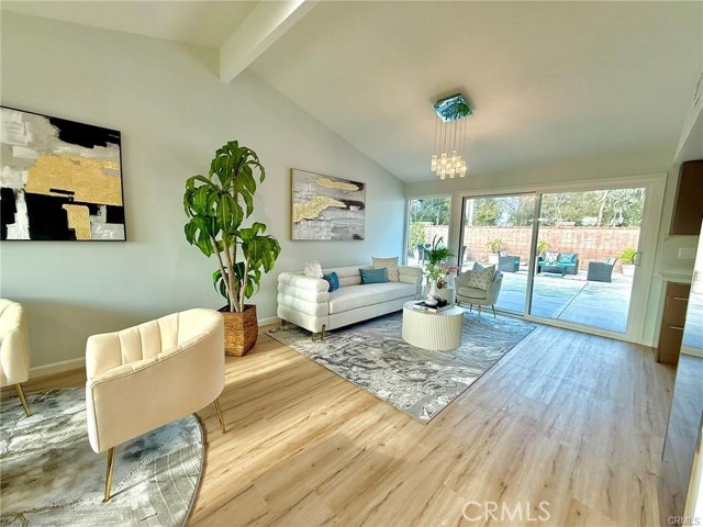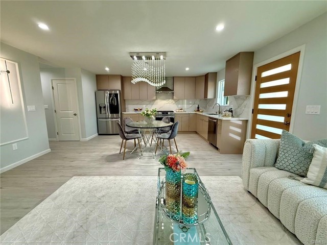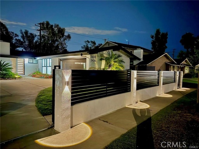 Welcome to this one-of-a-kind Rossmoor compound offering two separate gorgeous homes. The Main House – 3 bedrooms, 2 baths. The ADU – 2 bedrooms, 2 baths. This beautifully upgraded property sits on a spacious 8,264 sq.ft. lot. A stunning remodeled main house has 1,736 sq.ft. of modern living space. A beautiful metal fence with automatic sliding door enhances its curb appeal. Neutral waterproof vinyl flooring, elegant chandeliers, and recessed lighting throughout. The cozy living room features a striking natural stone, wood-burning fireplace. The gourmet kitchen with gorgeous quartz countertop is complete with a 5-burner cooktop, advanced Smart Slended IQV technology rangehood, built-in microwave/oven combo, and high-end Samsung Bespoke appliances, including a smart white-glass dishwasher and 4-door French-door refrigerator with a beverage center. Both bathrooms are beautifully remodeled with frameless LED wall vanity mirrors. An indoor laundry area includes a washer and dryer for added convenience. A paved concrete spacious yard separates the newly constructed, fully permitted ADU (Accessory Dwelling Unit) which boasts nearly 1,000 sq.ft. of sophisticated living space with its own private address. The open-concept layout includes a bright living area with stylish wall sconces, recessed lighting, and a formal dining area under an elegant crystal chandelier. The sleek kitchen features a 5-burner gas range with rangehood, built-in microwave/oven combo, dishwasher, and a premium LG Instaview 3-door refrigerator. The spacious primary suite offers a large walk-in closet with built-in organizers and a vanity with lighted drawers. The secondary room with a walk-in closet and organizer is across the hallway bath. It also includes an in-unit laundry area with washer and dryer. Located in the award-winning Los Alamitos School District, this property is more than a home—it’s a savvy investment. Whether utilized as a high-end rental, a guest house, or a private compound for extended family, this impressive Rossmoor gem is a rare find and a must-see.