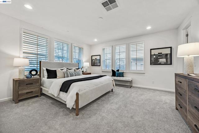 Don't miss this Beauty, This is the one! See all the rest and compare! Welcome to Trio at Jordan Ranch! This stunning highly upgraded light and bright end unit is a MUST SEE to fully appreciate! It 's Pristine and Move-In Ready! Featuring 4 Bedrooms including 3 Suites, 4 Baths, 2,447 sq. ft. of living space. The first floor features a private, one bedroom suite including full bath and walk-in closet. Plantation shutters through out. The fabulous open- concept second floor includes two view balconies, dining area, gourmet kitchen featuring quartz countertops, stylish back splash, top of the line Thermador Appliances plus a bedroom / office, full bath and Laundry room. The third floor hosts a spacious primary suite with lots of natural light, custom walk-in closet, upgraded 2 sink vanity and walk in shower plus another bedroom suite. All this within walking distance to the top-rated Cottonwood School (K-8) and close to parks, shopping, dining and freeway access. Views: Ridge