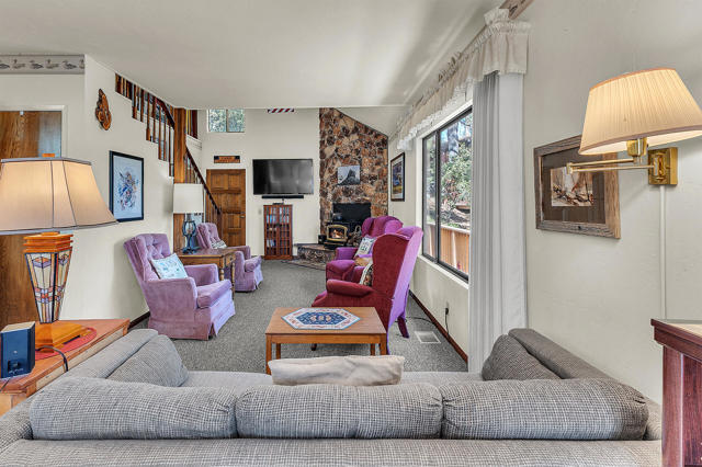 PERFECT VACATION OR FULL-TIME HOME!Spacious, well maintained home with new roof, new propane forced air heating, new flooring and newly painted exterior. Cathedral ceiling living room has large rock fireplace with wood stove insert, roomy kitchen with generous cabinet and counter space plus adjoining dining area with access to large wrap-around deck. There are 2 bedrooms (including large primary on main floor) plus large loft with plenty of room for overflow guests, 1.75 baths, laundry and outside tool/storage shed. Large, usable yard and plenty of extra parking. Home comes furnished. Hard to beat this well-maintained home at this price!