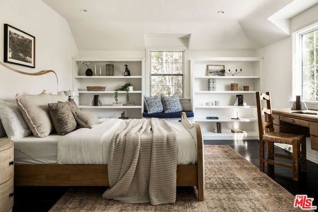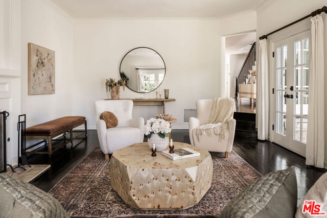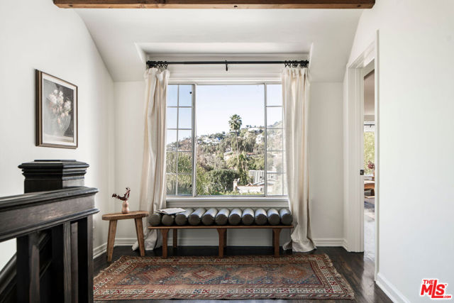 Tucked into a rare, quiet cul-de-sac in the Hollywood Hills just moments from the energy of Runyon Canyon this timeless residence offers classic elegance with an unmistakable sense of old Hollywood glamour.Hedged, gated, and exceptionally private, the home unfolds behind a graceful flagstone driveway and patios, setting the tone for a serene retreat perched just below some of the neighborhood's most significant estates. Inside, beautiful natural light pours through the rooms, highlighting a classic, enduring design that feels both refined and warmly livable.The pristine chef's kitchen is finished with Carrera marble counters, echoed again in the primary and guest baths, lending a cohesive sense of understated luxury throughout. The primary suite features a generous walk-in closet, enhancing the sense of comfort and ease. Generous interior spaces flow seamlessly outdoors, creating abundant room for gathering, entertaining, or quiet moments alike.Sweeping hillside and city views provide a cinematic backdrop. A pool and in-ground spa anchors the outdoor living spaces, offering a tranquil escape with the city just beyond. Side-by-side parking an uncommon luxury in the area adds ease and practicality rarely found in the neighborhood, where tandem parking is the norm.Peaceful, elegant, and effortlessly timeless, this is a Hollywood Hills home that honors the past while living beautifully in the present.