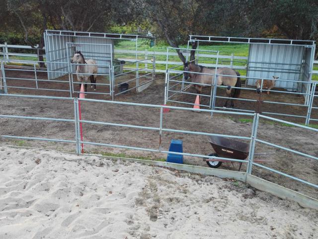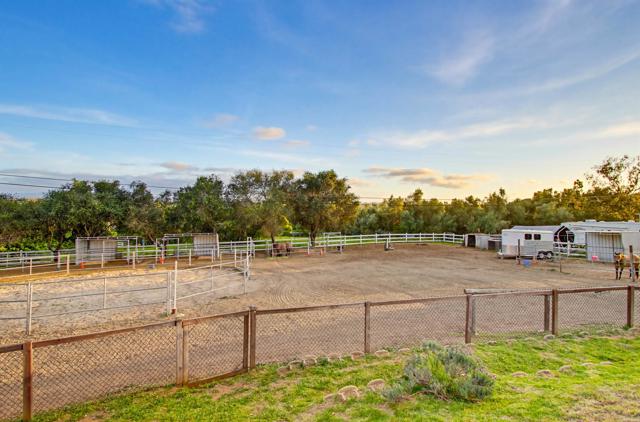 Your Dream Horse Property with Dazzling Pool and Spacious Home awaits! Features of this fully fenced, 1.3 acre, 4 bed+office, 3.5 bath property include: Equestrian space with pipe fenced round pen, covered stalls, hay barn, several cemented hitching posts, designated horse wash rack, chicken coop, and room for trailer storage; Well-maintained and recently refinished PebbleTec pool with outdoor shower, spacious covered exterior dining space; Open-beam natural wood cathedral ceilings with operational skylights to allow fresh air flow; Kitchen features enormous center island, 6-seat breakfast bar, walk-in pantry, computer “corner”; Primary suite with access to back patio/pool, light and bright primary bath has been completely remodeled with modern finishes and includes a luxurious step in shower with pebble floor, dual sinks and walk-in closet; Jack-n-Jill bedrooms; Private office faces front of home; Massive laundry/mud room w/direct access to garage and backyard farm; Oversized 3-car garage with attached storage room; Lush natural grass with mature tree landscaping, fruit trees, raised garden beds; Entire exterior recently painted.
