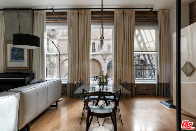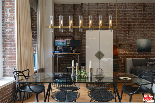A rare offering at the iconic Pan American Lofts, this beautifully renovated open-concept 1-bedroom blends historic grandeur with refined modern design. Built in 1897 and designated an L.A. Historic Cultural Monument, this intimate 40-unit Beaux Arts community qualifies for the MILLS ACT, offering significant property tax savings which helps offset the monthly HOA dues. Inside, 11' ceilings, original exposed brick, and oversized windows flood the space with natural light. The fully renovated chef's kitchen features custom cabinetry and high-end (Viking & Wolf) stainless steel appliances, while the redesigned bath delivers a clean, spa-like aesthetic. The open layout enhances the loft's scale and flexibility for live/work living. Conveniences include in-unit laundry, controlled entry, a community interior courtyard lounge area, and a prime parking spot in the secured on-site parking garage. Ideally located at 3rd & Broadway, the home is directly across from Grand Central Market and moments from the Bradbury Building, Metro, Little Tokyo, and DTLA's best dining and culture. HOA dues include water, gas, sewer, trash, high-speed internet, and premium cable (Spectrum + HBO).