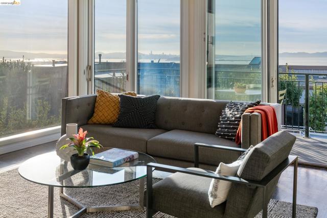 A rare opportunity to put your own touches on a very special unit at a below market price! You really can see for miles and miles and miles from this beautiful townhome in serene Hiller Highlands! Enjoy breathtaking sunsets over the Golden Gate Bridge with a panoramic sweep north into Marin and south past the airport. The high ceilings and walls of glass in the main living space add volume to the combined living, dining and kitchen areas. Anchored by a fireplace and open to an outdoor balcony, this space is perfect to gather friends and family. The primary suite is up a few stairs and includes a fireplace and open bookcases, a walk-in closet and private bathroom. The lower level features another full bath shared by two bedrooms. Both of these bedrooms have sliding doors that open out to a private outdoor oasis covered in wisteria and featuring an outdoor television! The additional 450 SQ FT of outdoor living is private and fully enclosed making it a happy place for pets and people. A two-car garage with interior access and extra storage add to the convenience of this special home. Sharing only one wall with a neighbor and positioned as one of only 11 homes on private cul-de-sac adds to the tranquility of the setting. Views: Downtown
