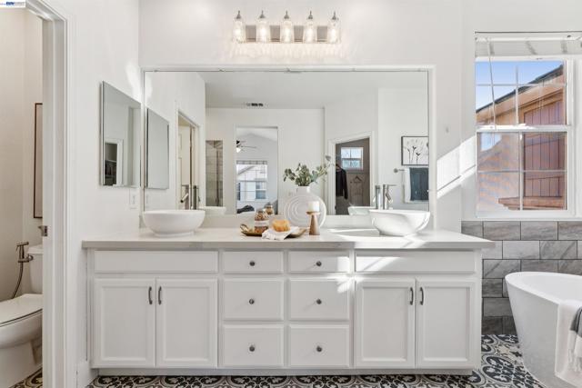 This beautifully updated single-family home sits in one of Dublin’s most commuter-friendly neighborhoods, offering vaulted ceilings, abundant natural light, and a flexible floor plan designed for today’s lifestyle. Step inside to a dramatic entry with soaring vaulted ceilings and an open spindle staircase. The living room features a cozy gas-burning fireplace and flows effortlessly into a bright dining area—perfect for gatherings. The updated kitchen shines with white cabinetry, granite countertops, and stainless steel appliances. Enjoy movie nights in the family room with built-in speakers while the remodeled downstairs bath and indoor laundry room add thoughtful convenience. Upstairs, the light-filled primary suite offers a peaceful retreat with vaulted ceilings, a walk-in closet with built-in storage, and a spa-inspired bath featuring dual sinks, a soaking tub, and a separate shower. Two additional bedrooms, generous hall cabinetry, and an updated full bath provide comfort and privacy for family or guests. The backyard is perfect for entertaining with a spacious patio, perfect for family gatherings. Prime commuter location with top-rated schools and minutes from parks, dining, shopping, freeways, and BART. Low HOA & Low Property taxes! Open Sat & Sun 2-4