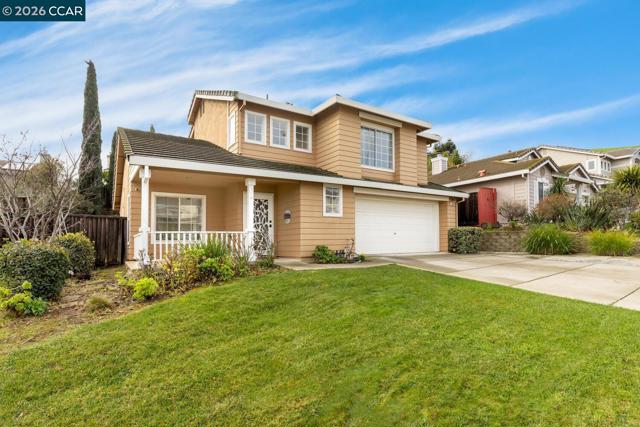 Love where you live! This quiet neighborhood has views of the convergence point of the San Francisco Bay Estuary and the Sacramento/San Joaquin River Delta. This delightful 2 story home is welcoming and cozy. Walking through the front door you will notice the attractive laminate flooring that runs through the living room, dining area and family room. High ceilings give the family room a light and bright warmth. Past the dining area you will find the Kitchen with granite counter tops and travertine tile kitchen bar. The kitchen opens to the living room with fireplace w/travertine tile and a great view of the back yard. Upstairs you will enjoy the primary bedroom, bathroom and walk in closet. Down the hall are 2 good size guest bedrooms with a guest bath. This area is perfect for family, guests or a home office. The backyard offers a large patio perfect for outdoor dinners and gatherings. If you like to garden or just enjoy the tranquility of green trees and plants the hillside offers what you desire. Well located for commute purposes with easy access to the freeway and convenient to 242 and 680 freeways. No HOA.