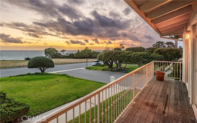Situated in an A++ Palos Verdes Estates location, directly across from the bluffs, this exceptional property offers over 100 feet of frontage and sweeping ocean views. Gracious front steps welcome you inside, where a light-filled living room is framed by dramatic floor-to-ceiling windows creating a stunning backdrop. A cozy den connects to the private primary suite with ensuite bath and walk-in closet. On the opposite side of the main level, the family room, dining room, remodeled kitchen, and guest bedroom create the perfect environment for everything from casual mornings to elegant evenings. Downstairs, four spacious bedrooms provide flexibility for family, guests, or home office use. Set on an expansive 19,766-square-foot corner lot, the grounds offer abundant space for outdoor enjoyment, entertaining, or future possibilities. A generous three-car garage and large driveway provide ample parking and storage. Just a short distance from all three level schools, it’s an ideal location. Ocean views, a thoughtful floor plan, and an oversized lot in one of Lunada Bay’s most desirable neighborhoods… this is Palos Verdes living at its finest.