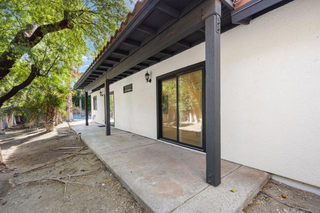 Tucked away on a lush corner lot in Desert Park Estates, this five bedroom, three bathroom property offers space, privacy, and versatility in the heart of Palm Springs. Surrounded by mature trees and layered greenery, the home enjoys a serene, garden like setting rarely found in the desert. A private front gate opens to a tranquil courtyard, creating a warm and welcoming entry to the main residence, which features four bedrooms and two bathrooms with comfortable gathering spaces and an easy indoor outdoor flow. A private, oversized casita adds exceptional flexibility, complete with its own living room, kitchenette, bedroom and bath, ideal for guests, extended family, rental potential or a dedicated work from home retreat. The property is further enhanced by a 3 car garage, offering ample space for vehicles, storage or recreational toys. Five bedroom homes in Palm Springs are not often available at this price point, making this a compelling opportunity for those seeking additional space without compromising location or privacy. No HOA and you own the land.