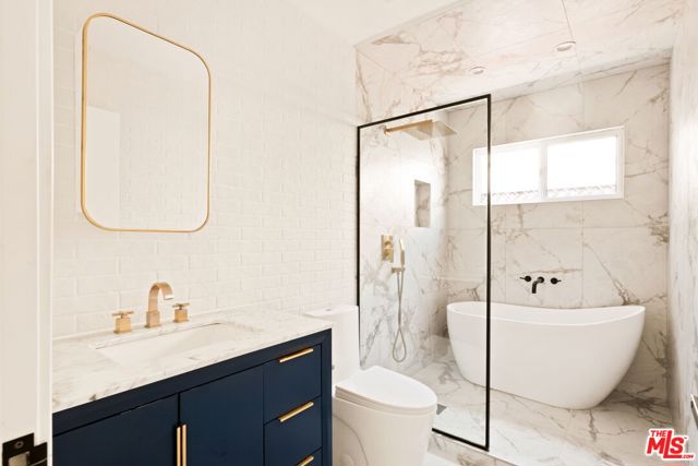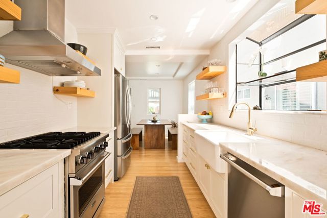 Tucked along a serene tree-lined stretch on Crescent Heights Blvd, this Beverlywood-adjacent, exquisitely remodeled home combines timeless character with high-end upgrades. The inviting living room features cathedral ceilings, fireplace, and beautifully maintained original hardwood floors. A gourmet kitchen showcases Italian marble countertops, Viking appliances, and a charming bay window that floods the room with natural light. In addition to the main residence is a spectacular fully permitted ADU with its own address and entrance. Completed in 2024, this stylish and versatile space offers a kitchen with gas hookups, bathroom, and mini-split HVAC; perfect for guests, a home office, or income potential. Outside, a backyard oasis awaits with mature greenery, including an orange tree, and privately gated parking for two side-by-side vehicles. A centrally located jewel that combines effortless access to Beverly Hills, Century City, Culver City, and all the dining and shopping the Westside has to offer.
