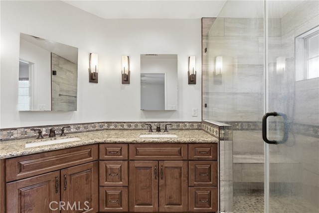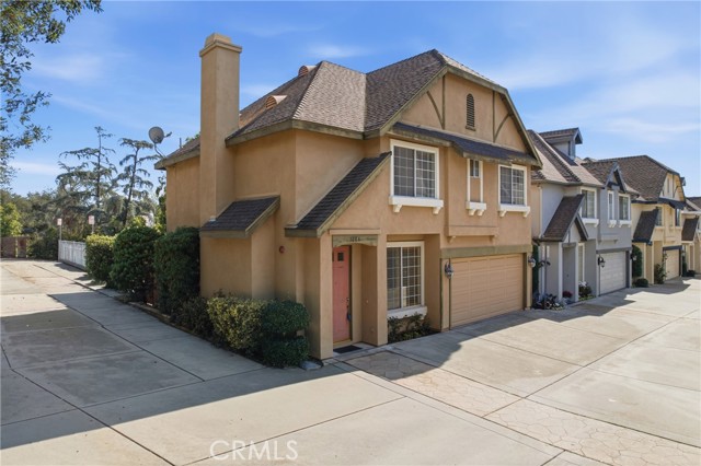 Welcome to this beautifully maintained two-story end-unit stand-alone townhouse-style PUD built in 2001, offering the privacy of no attached walls and no rear neighbor. With low HOA dues and a prime location close to schools, Old Town Monrovia, and easy freeway access, this home blends comfort, convenience, and value. The exterior features a classic clip-gable roof and a charming arch-top gable vent, setting the tone for the thoughtful design inside. Step into a good-sized living room with plush carpeting, a striking stone-surround fireplace with hearth, and a handsome wooden staircase that anchors the space. The formal dining area sits just off the kitchen and showcases stone tile flooring, a stained-glass chandelier, and sliding glass doors that open to a private, fenced, and landscaped rear patio—perfect for outdoor dining and relaxing. The kitchen offers ample wood cabinetry, ceramic countertops, recessed lighting, a charming garden window, and included stainless steel appliances. A separate laundry area is conveniently located off the kitchen on the service porch with access to the patio. Downstairs also features a powder room with a pedestal sink. Once upstairs, you'll find a large landing with linen cabinet storage, which leads to four bedrooms, including a generous primary suite with ceiling fan, walk-in closet, and an impressive en-suite bathroom featuring a rustic wood dual-sink vanity with granite countertops, decorator sconces, stone flooring, and an XL smart shower system complete with pebble flooring, bench seating, and decorative stone tile ribbon detail. A full upstairs hallway bathroom includes dual sinks, wood vanity, and stone flooring, shared by the other three bedrooms. Additional amenities include a two-car attached garage, double-paned windows, central air and heat, and a desirable stand-alone configuration rarely found in townhouse communities. Enjoy the feel of a single-family home with the convenience of a planned unit development in a highly desirable Monrovia location. This home is ready for you to move into right away, so don't miss this opportunity.