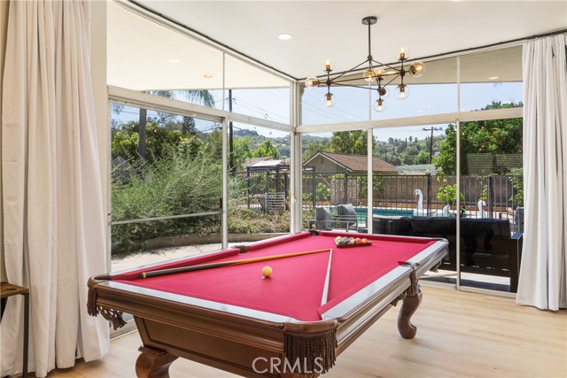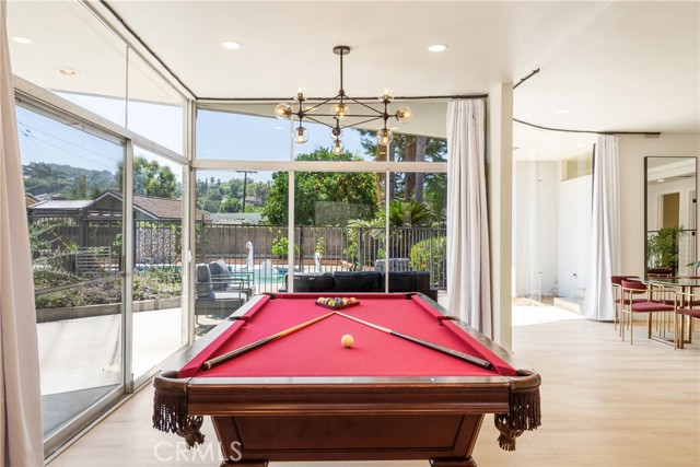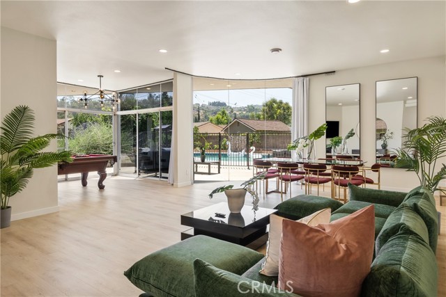 The resort-style backyard is an entertainer’s dream, featuring a sparkling swimming pool, outdoor shower, and a dedicated poolside cabana bathroom for ultimate convenience. Enjoy effortless outdoor hosting with a built-in outdoor wet bar, perfect for relaxing or entertaining guests year-round. The expansive grounds also feature mature tangerine, kumquat, and papaya trees, offering a private garden setting with fresh fruit right at home.