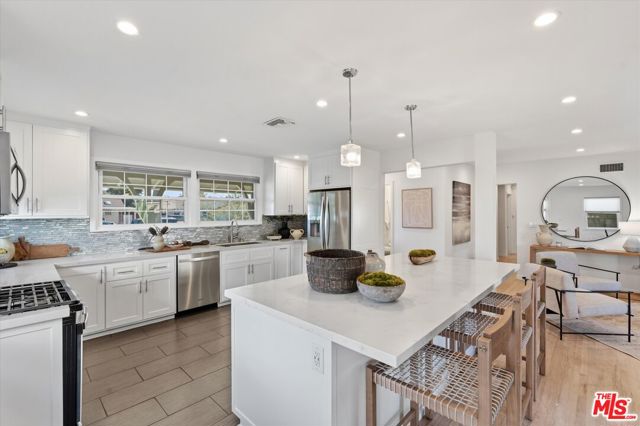 Tucked away on a quiet circular street with no through traffic, this fully updated 4-bedroom, 2-bath residence offers a rare sense of privacy , safety and neighborhood comfort. The expansive backyard, adorned with native low-water plants and trees, epitomizes the quintessential Californian lifestyle. Inside, an open-concept floor plan is filled with natural light and anchored by a large kitchen island that flows seamlessly into the dining and living areas, creating the perfect environment for entertaining.The kitchen is equipped with stainless steel appliances, ample counter space, and storage. Thoughtfully upgraded, generous storage, solar panels for energy efficiency, a landscaped backyard for indoor-outdoor enjoyment, and a 2-car garage make this home as functional as it is beautiful. Enjoy quick access to the 405 freeway for easy commuting and connectivity to the LA west side and the valley. **Exterior Photos are from the summer when trees were in full bloom**