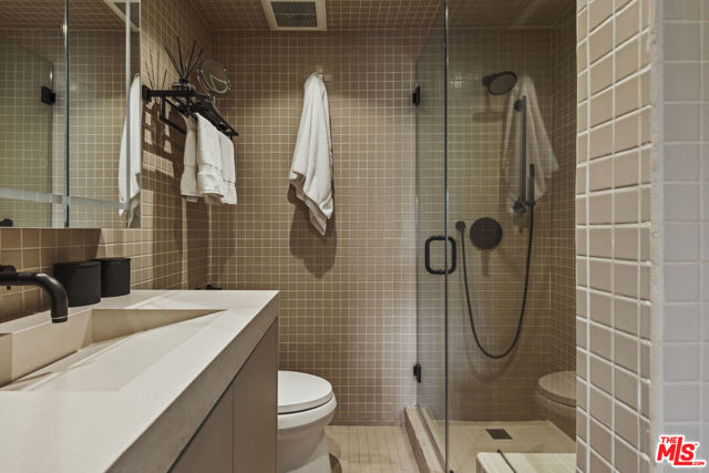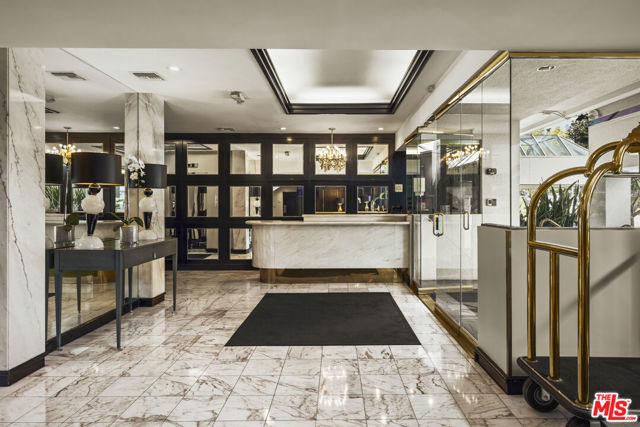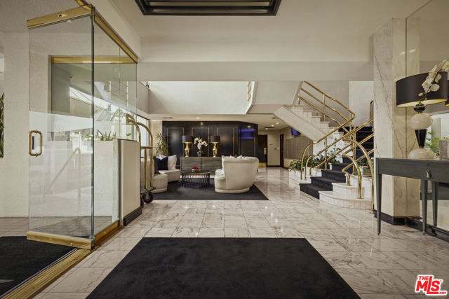 Light-filled and impeccably renovated, this stunning penthouse boasts one of the premier courtyard views at the Park Wellington. Rich wood floors welcome you into a thoughtfully redesigned interior featuring a stylish guest bath with a custom modern vanity and a gourmet chef's kitchen rarely found at this price point. Outfitted with premium Miele appliances including an induction cooktop, convection oven, speed oven, dishwasher, and refrigerator. The space is elevated by a Kohler undermount sink, pull-down faucet, and striking waterfall-edge Dekton countertops. The serene bedroom suite offers custom walk-in closet and a sleek spa-inspired bath with an oversized walk-in shower. Residents enjoy full-service amenities including concierge, resort-style pool, two spas, sauna, fitness center, dog park, tennis court, and remarkably low HOA dues. Ideally located just moments from Trader Joe's, Equinox, SoulCycle, WeHo Bistro, and the premier dining and shopping of Sunset Plaza.