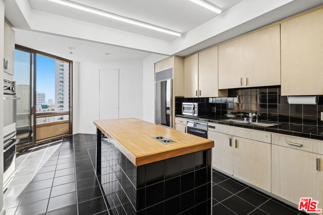Don't miss a rare opportunity to create your dream luxury residence in this expansive 15th-floor, panoramic city-view condo situated at the prestigious Mirabella. Bathed in natural light, the spacious open floor plan is framed by dramatic floor-to-ceiling windows showcasing sweeping vistas from nearly every room. The grand living room is designed for entertaining, complete with a gas fireplace and sliding glass doors that open to a private balcony, offering spectacular "top of the world" views. The existing chef's kitchen features double refrigerators, double ovens, a prep island, range with hood, and abundant cabinetry, and presents a unique opportunity to create a showpiece space with seamless indoor-outdoor flow to the attached balcony, ideal for al fresco dining. The oversized primary suite is ready for a 5-star resort upgrade, and features its own private city-view balcony, walk-in closet, separate sitting area, and plenty of space to design a spa-inspired bath complete with soaking tub, luxury walk-in shower, and dual vanities. The secondary bedroom is privately situated on the opposite wing and also enjoys balcony access, and can easily be transformed into a guest suite, media lounge, or studio. An elegant foyer, powder room, and additional full bath enhance the functional layout, providing both comfort and versatility. Residents of the full-service Mirabella enjoy a host of premier amenities, including newly renovated lobby and elevators, 24-hour valet and concierge, EV charging stations, fitness center, pool and spa, extra storage, and entertaining facility with gourmet kitchen. Ideally located along the coveted Wilshire Corridor, just moments from the fine dining, upscale retail, and entertainment of Beverly Hills, Century City, and the Westside, this breathtaking residence offers world-class luxury in one of Los Angeles' most prestigious locales.