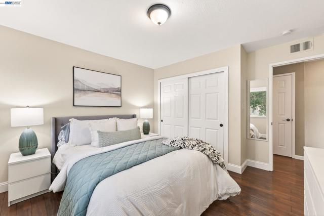 PERFECT PLEASANTON STARTER // Move-In Ready & Made for Easy Living - Set on a quiet and serene corner lot in the Laguna Vista community. This upstairs, single-level unit offers wood flooring throughout, an open-concept living area, 2 bedrooms, and 1 full bath. The updated kitchen features granite countertops and stainless steel appliances. Premium location with park views adds privacy and natural light. Enjoy resort-style community amenities including a pool, fire pit + patio, pickleball court, outdoor workout areas with free weights, playground, and HOA-hosted community events. Ideally located off Foothill Road near top-rated schools, shopping, restaurants, parks, and hiking/biking at Pleasanton Ridge, with easy access to 580/680 and BART. Includes a covered single car carport with storage cabinets, and in-unit laundry with washer/dryer. Low-maintenance living in the heart of Pleasanton.