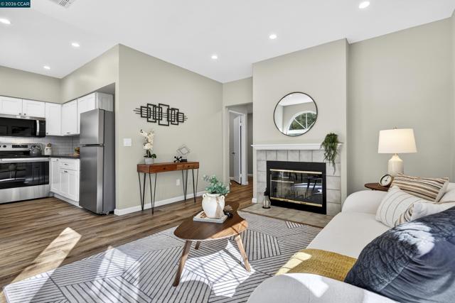 Welcome to 603 Forest Run, a beautifully remodeled 2-bedroom, 1-bathroom lower-level unit in the desirable Forest Run community. The thoughtfully designed layout maximizes every inch, creating a comfortable flow that feels more spacious than expected for a home of this size. This turn-key 778 sq ft condo features brand-new vinyl plank flooring, fresh paint, recessed lighting, and abundant natural light throughout. The updated kitchen includes all new stainless steel appliances, white shaker cabinetry, quartz countertops, subway tile backsplash, and new fixtures. The living room offers a fireplace and access to a private deck with peaceful greenbelt views and no rear neighbors. The bathroom has been fully renovated with a modern vanity, designer tile, and updated lighting. Both bedrooms are well-sized with excellent closet space. Additional features include in-unit laundry, updated windows, and a 1-car garage—a rare benefit in this community. Forest Run offers a quiet, tucked-away setting close to shopping, parks, trails, public transportation, and freeway access. This unit is truly move-in ready!