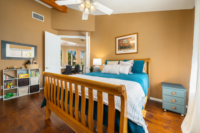 Situated on a gated cul-de-sac, this spacious residence offers over 3,500 square feet of comfortable desert living with a thoughtfully designed layout and fully paid-for solar, providing long-term energy efficiency and cost savings.The home features four bedrooms and four bathrooms, including generously sized guest rooms -- a refreshing change from the trend of compact secondary bedrooms -- offering plenty of space for guests, hobbies, or home offices.The flexible floor plan provides expansive living and gathering areas filled with natural light, creating an inviting environment for both everyday living and entertaining. Large windows throughout the home capture views of the backyard and enhance the open, airy feel.A long private driveway adds both curb appeal and functionality, complete with a basketball hoop and ample space for parking and recreation. The gated cul-de-sac setting offers added privacy and a peaceful neighborhood feel.Golf enthusiasts will appreciate the close proximity to Bermuda Dunes Country Club, where membership opportunities are available without residing within the community. Conveniently located near shopping, dining, schools, and everyday amenities, this home combines space, efficiency, comfort, and an ideal desert location.