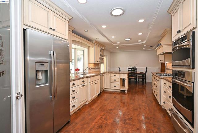 Charming and thoughtfully updated, this single-story 3-bedroom, 2-bathroom home is located in the highly desirable Tempo neighborhood of South Livermore. From the moment you arrive, you’ll appreciate the home’s inviting curb appeal and spectacular view of pleasure island park and the beautiful grounds. Enter through a charming arched entryway and step into a bright, flowing floor plan that seamlessly connects the cozy living room with gorgeous views of the park to the expanded remodeled gourmet kitchen features custom distressed wood cabinets , elegant stone countertops, walk in pantry , gas range, built in SS GE and microwave oven all bathed in natural light and offering a lovely view of the backyard. Step outside into your own private retreat: expansive covered patio, and serene garden make this backyard perfect for relaxing or entertaining. She shed and He shed offer additional versatility along with generous side yard access, owned solar is three years old and newer heating and air conditioning. This turnkey home offers a peaceful, easy-living, lifestyle with thoughtful upgrades throughout. Located within top-rated school boundaries and just minutes from vibrant downtown Livermore, local parks, wineries, and South Bay commute route