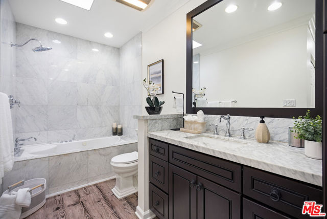 Gorgeous 2-bedroom, 2-bath upper-level condo in an intimate two story building, centrally located in a prime Santa Monica neighborhood. A flexible bonus area off the entry is ideal for a home office, gym, or den. The updated kitchen, double-pane windows, and new in-unit washer and dryer offer comfort and convenience. The living area features a covered balcony extending off the foyer, decorative fireplace, and central heat/air for year-round comfort. Both bedrooms offer generous closets with built-ins, with additional storage in the living area. The primary suite includes an en-suite bath with hot tub. Situated in a quiet seven-unit building, the property includes one covered parking space. In close proximity to a variety of fine grocery stores, restaurants, coffee shops, art galleries, and the beach. Conveniently near Brentwood, Westwood, and Venice. Located within the Santa Monica-Malibu Unified School District. Buyer to verify school boundaries, enrollment availability, and district lines.