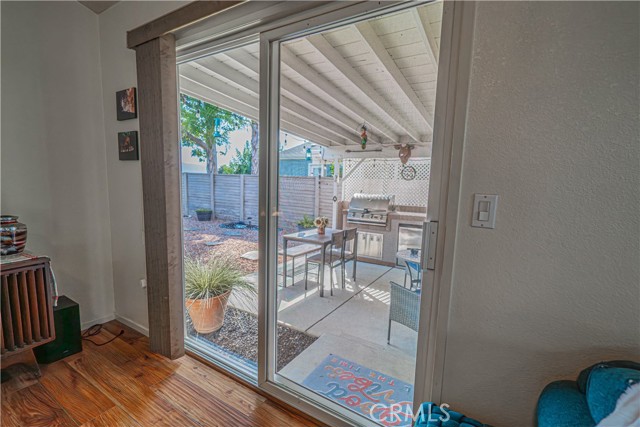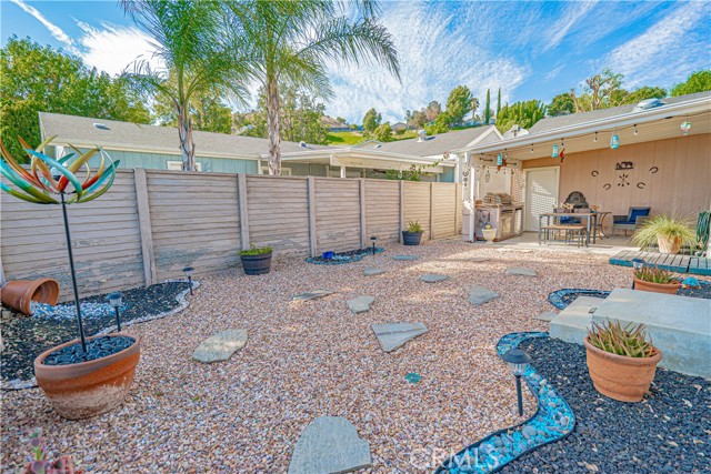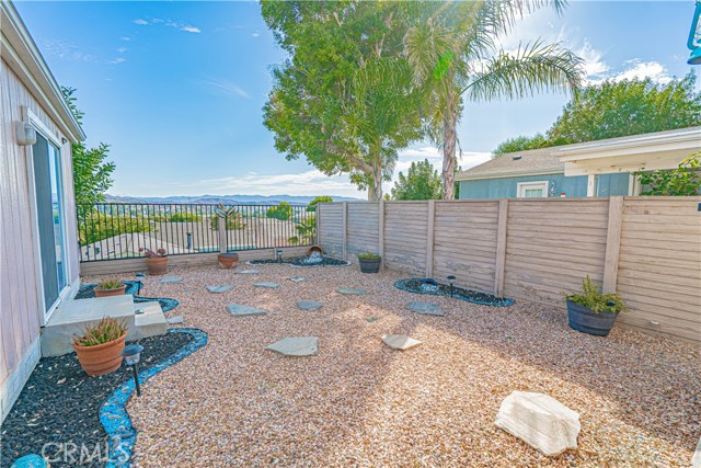 The home also features a two-car garage with direct access, complete with custom flooring, built-in cabinets, and a workbench. Sliding glass doors from the living room open to a wonderful outdoor living space with breathtaking views. The backyard is a true retreat, offering a covered, lighted patio and beautifully landscaped drought-tolerant grounds—ideal for relaxing or entertaining (????).